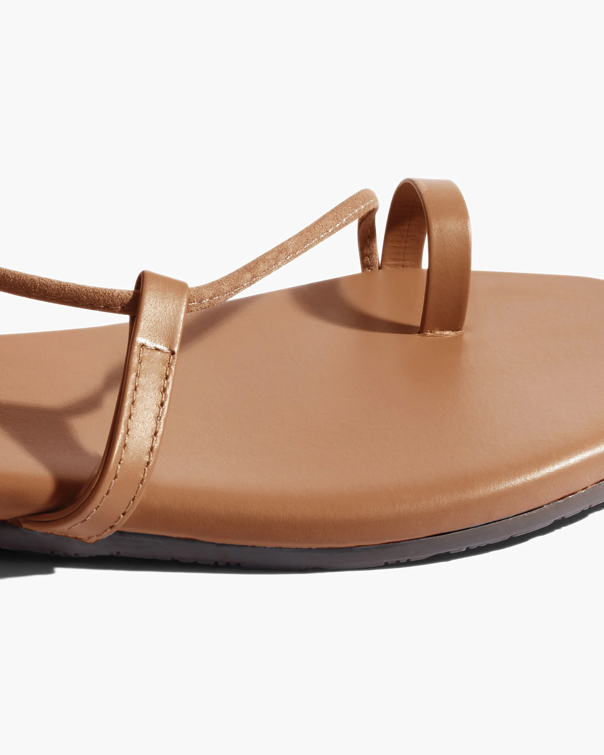 Barely-there, wrap-up sandals with a delicate toe loop and two perfectly placed straps for support. Handcrafted from soft Brazilian napa leather with adjustable suede ankle ties, a cushioned insole, and a rubber outsole for comfort.